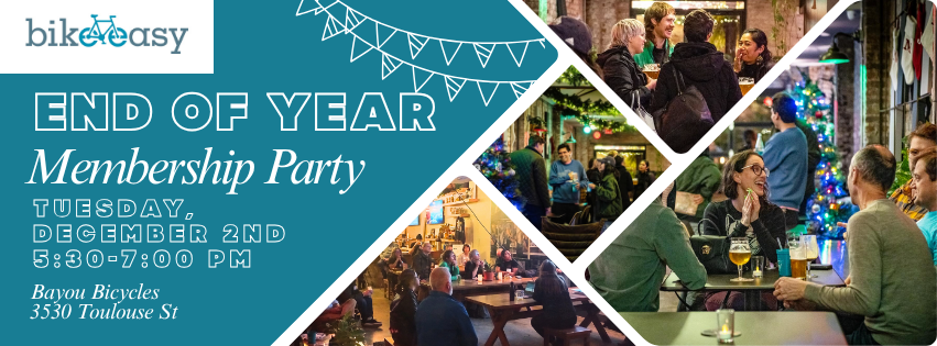 Join us for the End of Year Membership Party – Tuesday, December 2nd – 5:30 pm to 7:00 pm – Bayou Bicycles